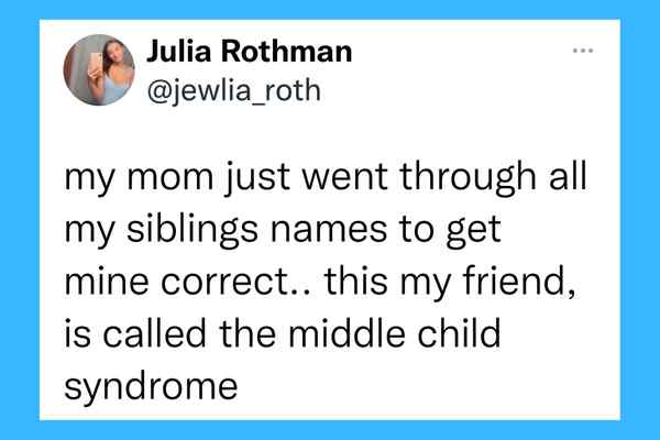 But many middle children identify with “middle child syndrome”, which Wikipedia defines as “the belief that middle children are excluded, ignored or even outright neglected because of their birth order.”