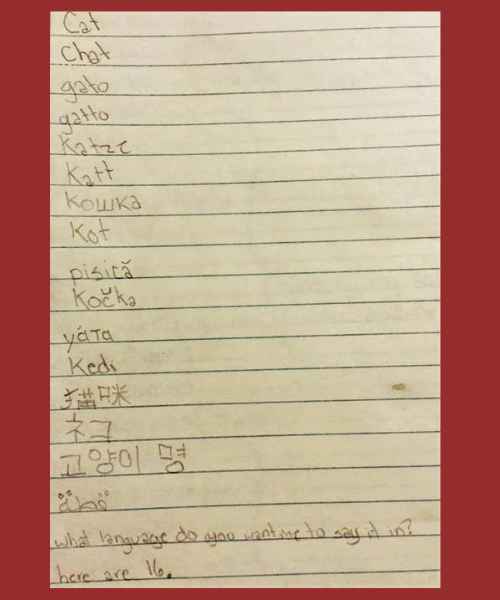 #13 This child wants a cat so bad she wrote it in 16 languages!