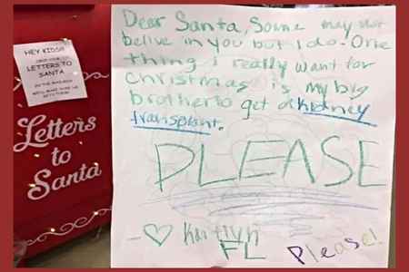 #7 And this story made the news when sweet Kaitlyn wrote, “Dear Santa, Some may not believe in you but I do. One thing I really want for Christmas is my big brother to get a kidney transplant. PLEASE.”