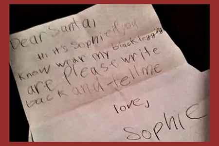 #8 Sophie writes, “Dear Santa, Hi it’s Sophie if you know wear my black leggings are please write back and tell me”. I’ll tell you one thing Sophie, if Santa can’t find them, nobody can find them!
