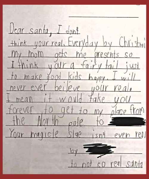 #5 To “Not So Real Santa” – something tells me the jig is up with this kid…