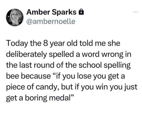 My 8 year old told me a boy proposed at school and she accepted and honestly this will be her second marriage so I told her she’s going to get a reputation.