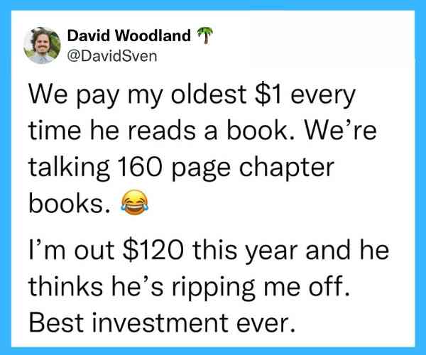 #13 I was such a bookworm when I was a kid – if my parents had done this I would’ve been so rich!